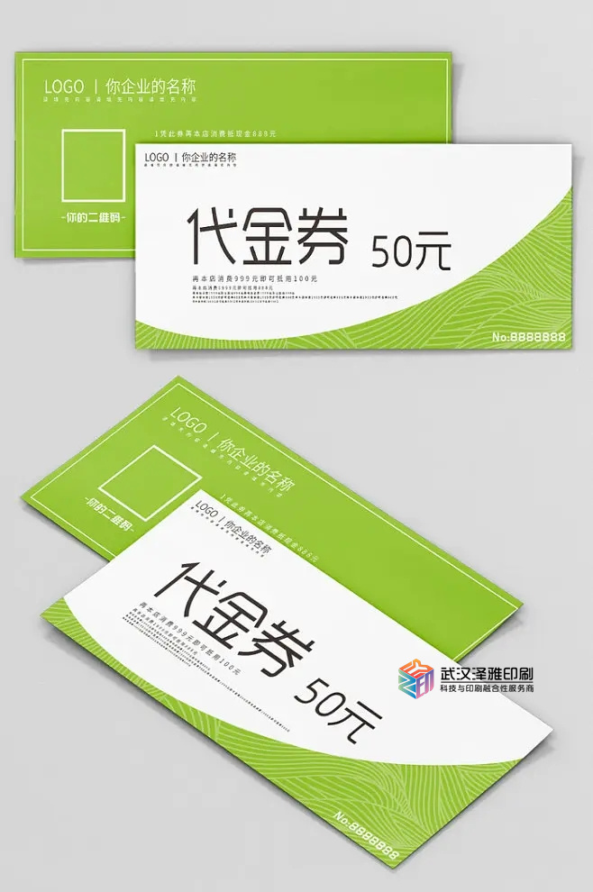 這種優(yōu)惠券/代金券/門票/抽獎券印刷尺寸為兩張名片大小,商家可在券面印刷企業(yè)LOGO、口號、促銷廣告,吸引消費者前來。